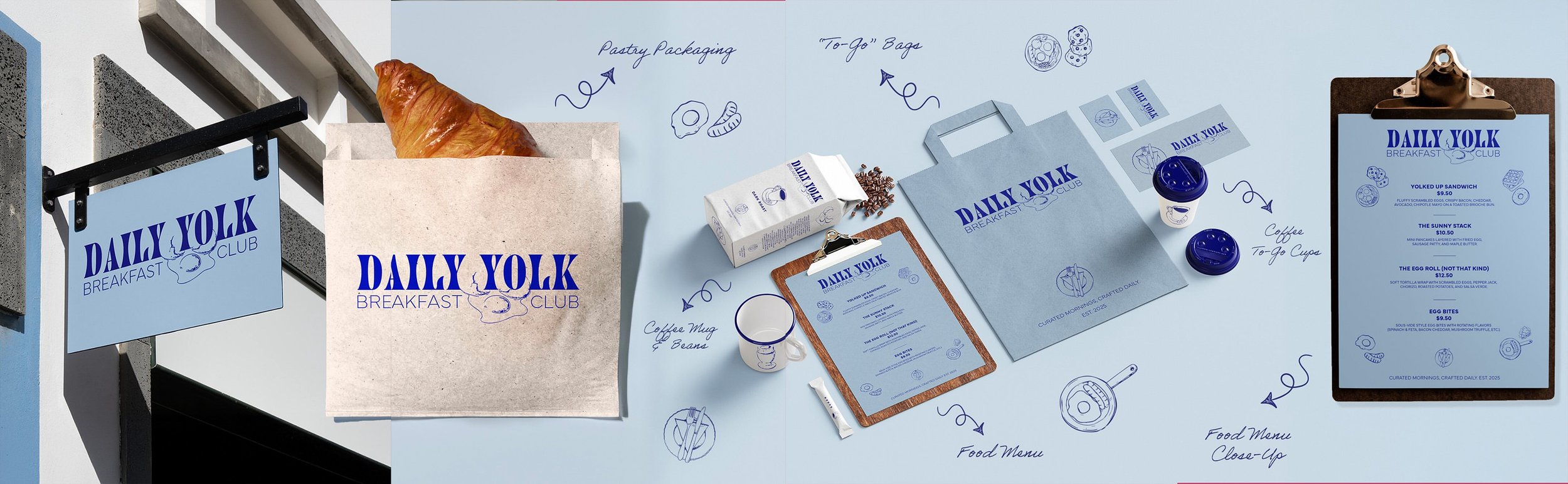 This personal project was a creative challenge designed to spark inspiration. The briefs were provided by @briefcorp, @designerbriefs, on Instagram, with the goal of creating a fun, modern breakfast brunch club. Deliverables included a full logo suite, menu, and optional creative extras of course. We were given a color palette and target audience to guide the work. The contest took place on Instagram.