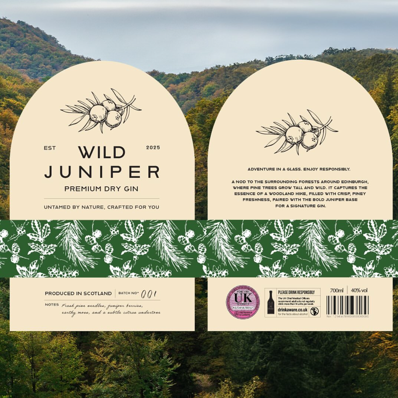 This personal project was a creative challenge designed to spark inspiration. The briefs were provided by @theglowandgrowclub, @designbyayelet, and @studiofloresence on Instagram, with the goal of creating a gin brand inspired by the wild beauty of Edinburgh, Scotland. Deliverables included a full logo suite, bottle label design, and optional creative extras. We were given a color palette and target audience to guide the work. The contest took place on Instagram, where I was honored to place first. It was a rewarding experience for both constructive feedback and brand exposure.